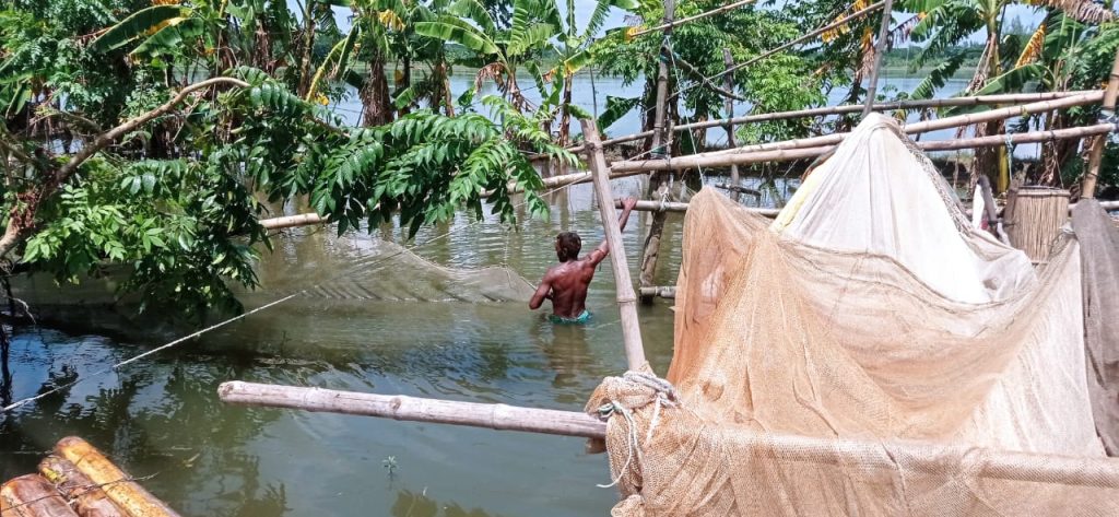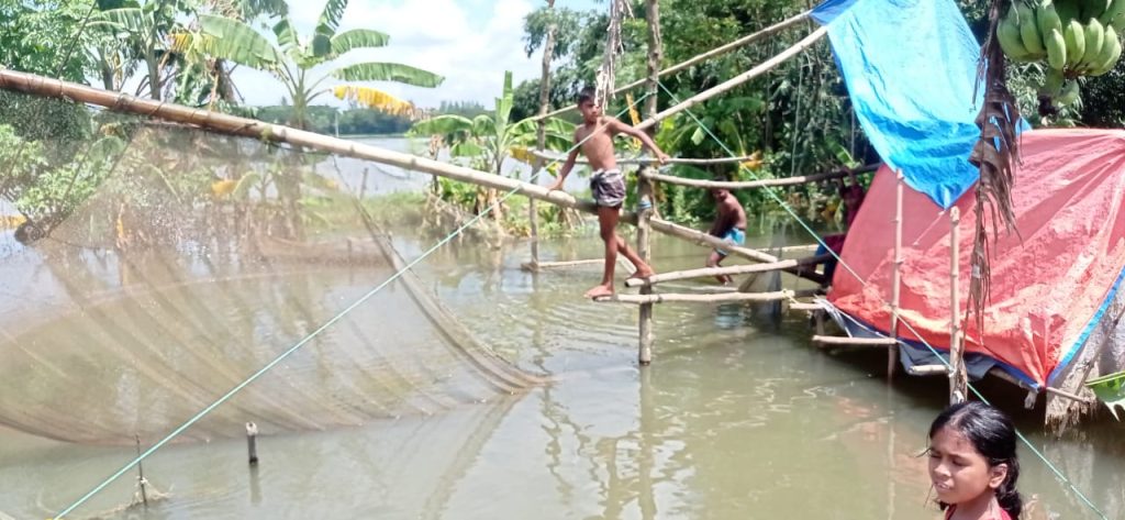কমলনগরের খালে পানি প্রবাহে বাধা সৃষ্টি করা জাল অপসারণ
