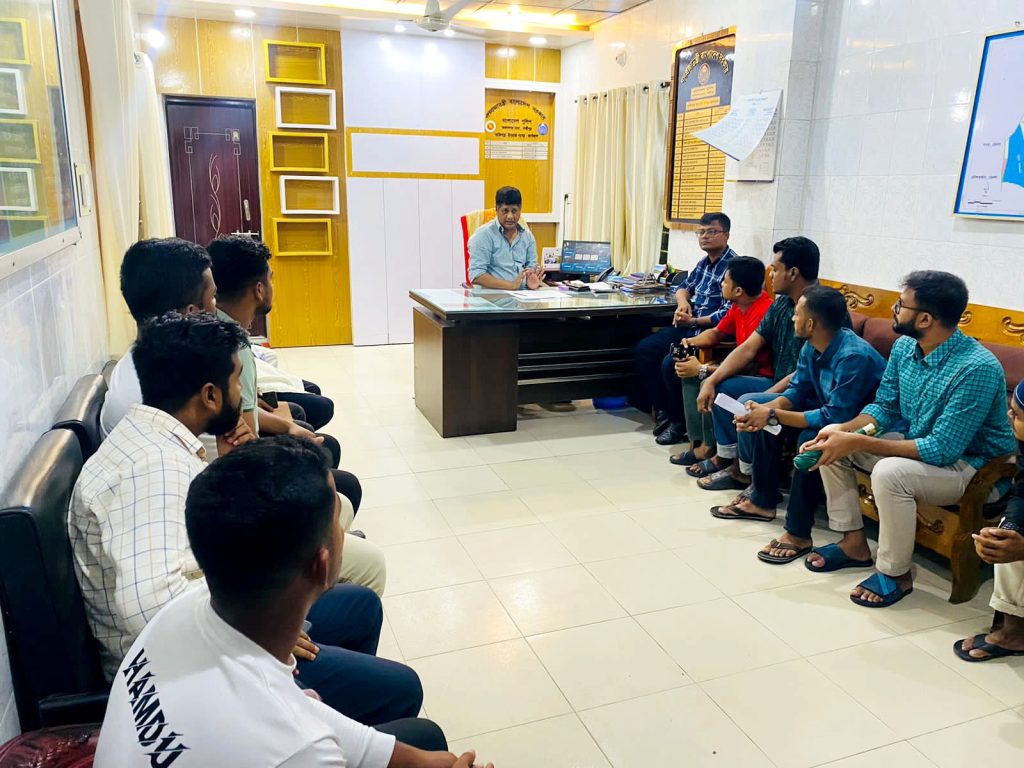 ১০(আগস্ট) শনিবার মাগরিবের নামাজের পর বিভিন্ন বিশ্ববিদ্যালয় পড়ুয়া শিক্ষার্থীরা ওসির সাথে বিভিন্ন দাবী সমূহ নিয়ে দেখা করেন।