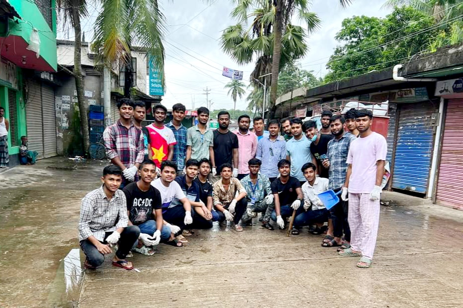 চর লরেন্স ট্রাফিক ও বাজার পরিষ্কারের দায়িত্ব পালন করছেন শিক্ষার্থীরা।